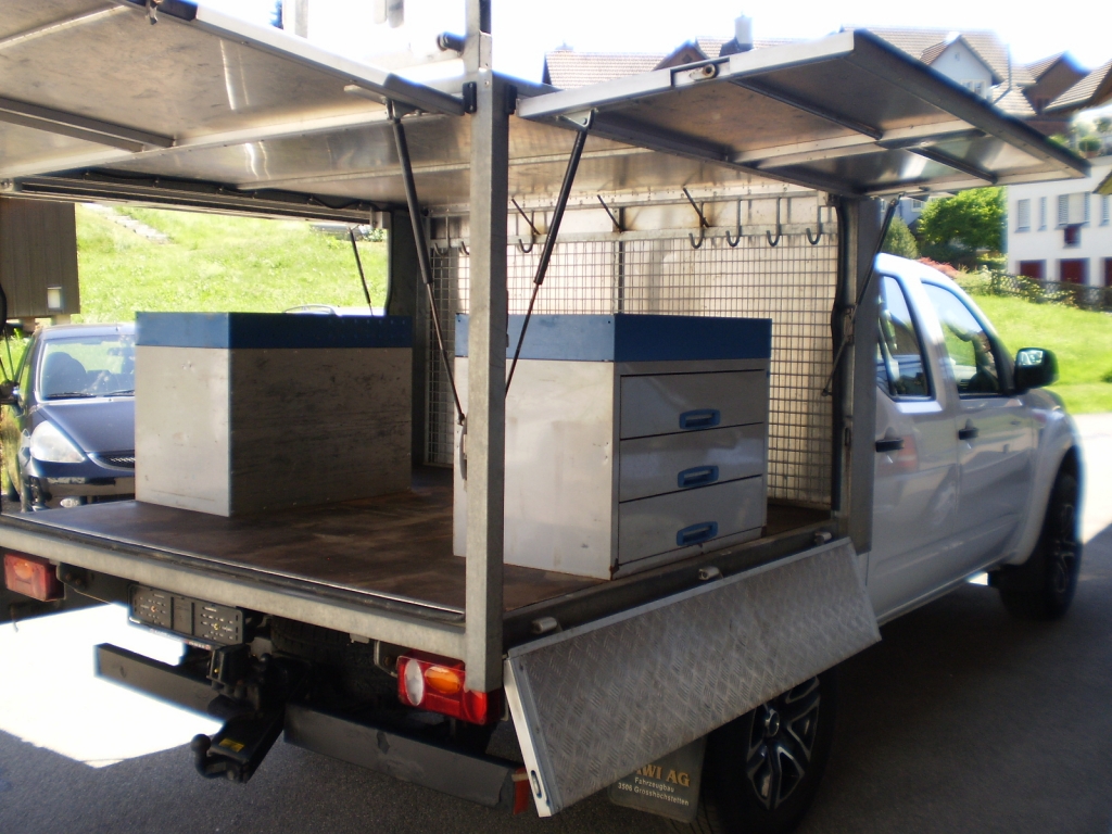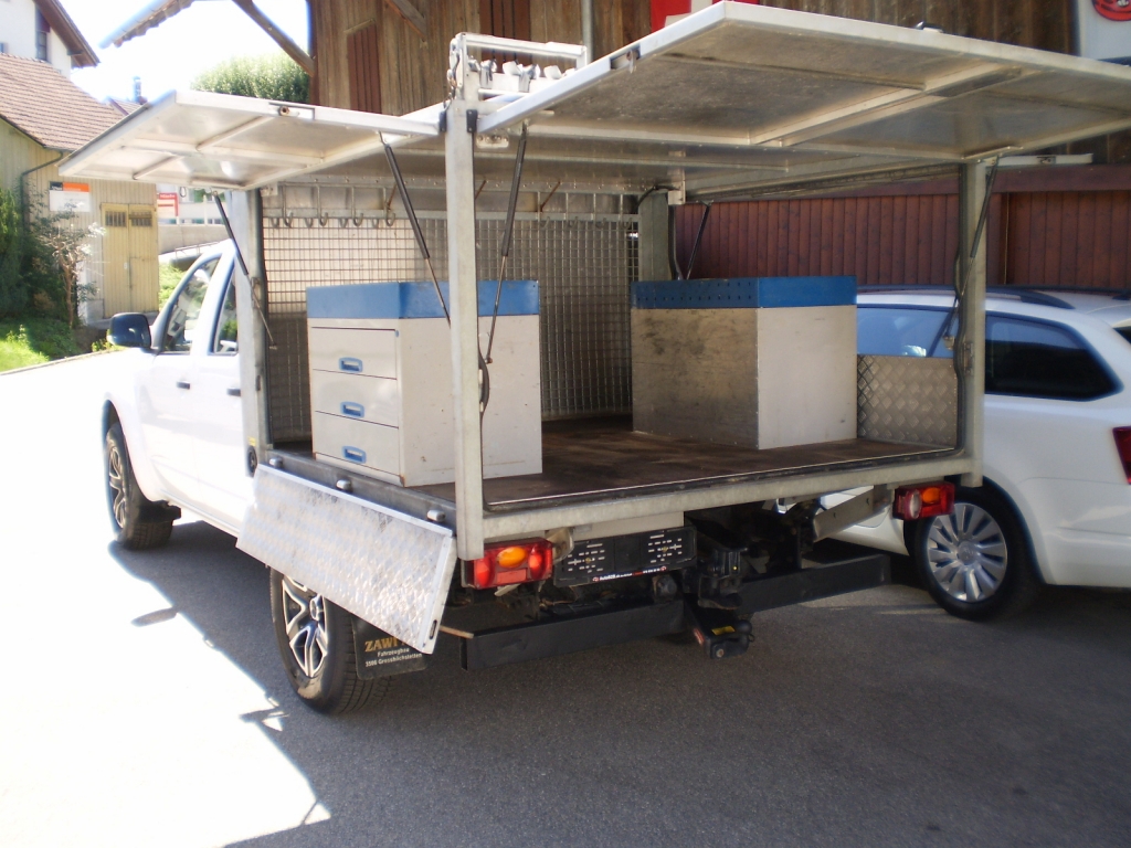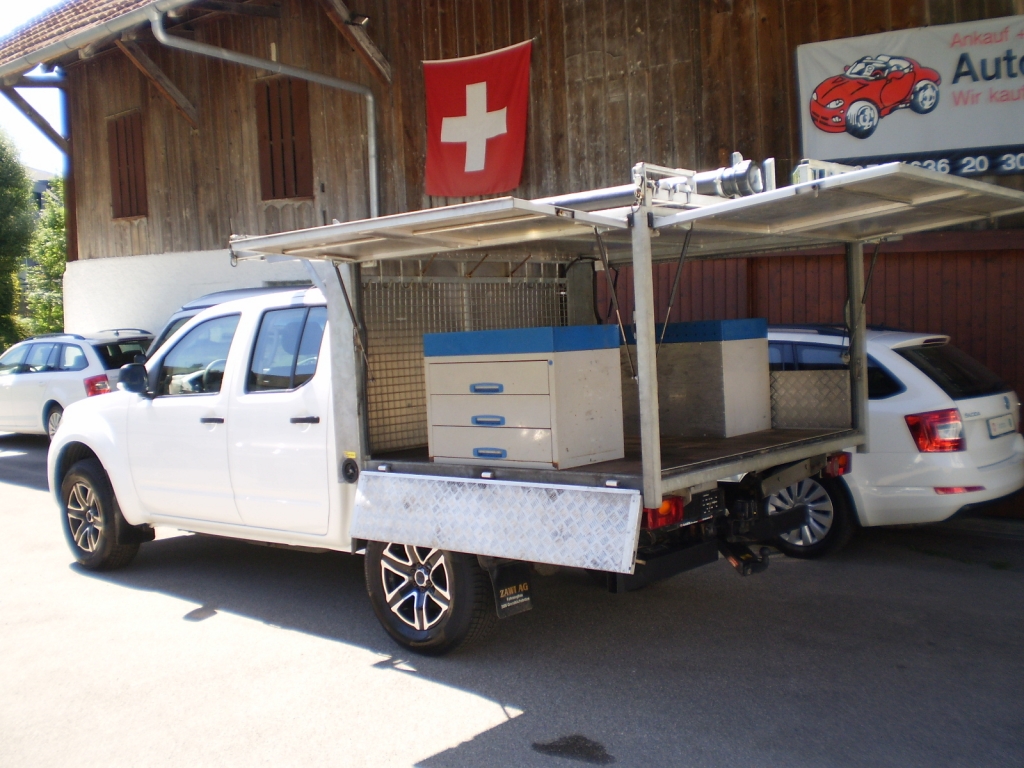 Navara Double Cab XE 2.5 dCi 4WD . Pick-Up Doppelkabine 190 (140 Kw) 4 5 Schaltgetriebe Diesel Allrad zuschaltbar ******************************************************************************** Fahrzeugbeschreibung 4-Türer mit 5-Sitzplätzen !¨geeignet für Gartenbau,Elektriker usw.. Anhängerkupplung plus Rockinger 3000kg !Leitergestell ! 4-Türer mit 5-Sitzplätzen !¨geeignet für Gartenbau,Elektriker usw.. Anhängerkupplung plus Rockinger 3000kg !Leitergestell ! 4WD Zuschaltbar ! Kasten hinten : Abschliessbar 2xSortimo Kasten mit Schubladen ! Leitergestell auf dem Kasten mit Verriegelung ! Zusatzblattfedern !! weitere 4x4 unter WWW.AUTOB2B.CH !!!! Teilzahlung möglich !! Abzahlung möglich!! Kredit möglich !! Eintausch möglich!! ..für weitere infos helfen wir Ihnen gerne weiter .......!! Mehr Energiedaten Verbrauch in l/100 km: 10.7/7.1/8.4 (St/Land/Tot) CO2-Emission: 222 g/km Euro Norm: Euro 5 AHK 3000kg ! Fahrzeugdaten 06.2014 169'000 km 190 PS Diesel Schaltgetriebe manuell Allrad Ab MFK: Ja Hubraum: 2'488 cm3 Zylinder: 4 Anhängelast gebremst: 3'000 kg Letzte Prüfung: 30.05.2018 Aussenfarbe: weiss Türen: 4 Sitze: 5 Leergewicht: 2'175 kg Fahrgestell-Nr.: AB MFK BEI VERKAUF ! Typenschein: 3NA919 Fahrzeugart: Occasion NotizenSerienmässige Ausstattung 12-Volt-Steckdose vorne 3-Punkt-Sicherheitsgurte auf allen Plätzen 4 Leichtmetallfelgen 17J mit Pneu 6-Gang-Getriebe ABS, EBD elektronische Bremskraft- verteilung Abschliessbares Handschuhfach Airbag Fahrer und Beifahrer Aktive Kopfstützen Allradantrieb zuschaltbar Anzeige 4x4-Modus Aussenspiegel in schwarz Blinker in Aussenspiegel Bodenbeleuchtung in Aussenspiegel integriert Bremsassistent (BAS) Cupholder vorne Drehzahlmesser Elektrische Fensterheber vorne + hinten Elektronisches Stabilitäts-Programm (VSC/VDC) Gurtstraffer vorne Heckscheiben-Schutzrahmen Hinterachsdifferential mit begrenztem Schlupf (LSD) ISOFIX-Befestigungspunkte für Kindersitz an den äusseren Rücksitzen Kühlergrill Mattgrau Lenkrad höhenverstellbar Lichtwarnsummer Nebelschlussleuchte Partikelfilter und Oxydationskatalysator Radiovorbereitung, Antenne, Entstörung und 2 LS Reduktionsgetriebe Rücksitze getrennt abklappbar Scheibenwischer vorne mit Intervall Servolenkung Stoffsitze Stossfänger hinten rohrförmig Stossstange vorne in Wagenfarbe Türwarnsummer Uni-Lackierung Unterfahrschutz hinten Wegfahrsperre elektronisch Zentralverriegelung Extras Dachträger Optionale Ausstattung Climate Pack-Radio/CD-Player Sperrdifferential hinten