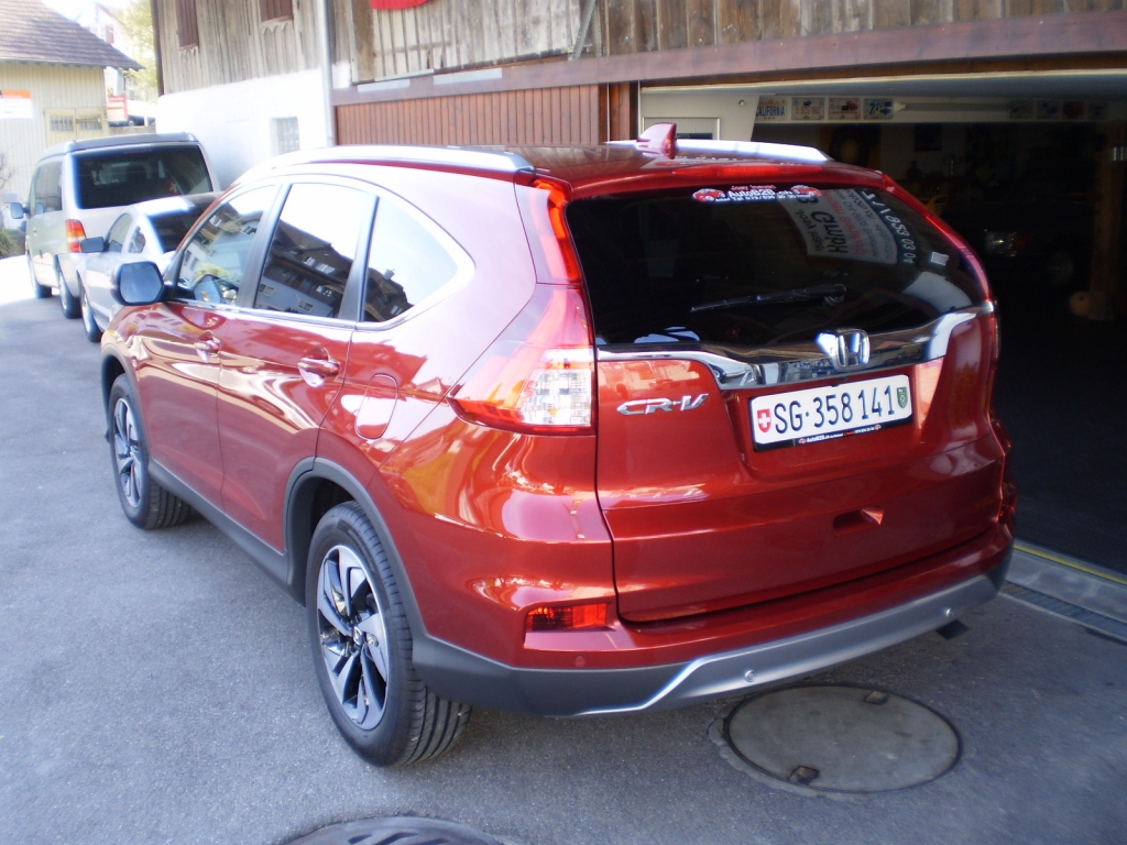 BeschreibungFahrzeugdaten. Inverkehrsetzung Neu . Fahrzeugart Neu . Aussenfarbe Passion Red Perl mét. . Kilometer 12 km . Getriebeart Automat sequentiell . Antriebsart Allrad . Treibstoff Diesel . Türen 5 . Sitze 5 . Hubraum 1'597 cm3 . Zylinder 4 . PS 160 . Leergewicht 1'794 kg . Verbrauch in l/100 km 6.0/4.9/5.3 (St/Land/Tot) . Benzinäquivalent in l/100km 6.0 . CO2-Emission 139 g/km . CO2-Emissionen 23 g/km . Durchschnitt der CO2-Emissionen aller verkauften Neuwagen 134 g/km . Energieeffizienz D . Euro Norm Euro 6 . Anhängelast geb. 1'500 kg . Typenschein 1HA458 . Ab MFK Ja . Garantie Ja . Preis CHF //VERKAUFT// ! . •Alufelgen. •Automatische Klimaanlage. •Bluetooth-Schnittstelle. •Distanzregler. •Eingebautes Navigationssystem. •Elektrische Sitzverstellung. •Freisprechanlage. •Isofix. •Kurvenlicht. •Panoramadach. •Parkhilfe. •Parksensoren hinten. •Parksensoren vorne. •Rückfahrkamera. •Schlüsselloser Zugang/Start. •Sitzbezug Leder. •Sitzheizung. •Spurhalteassistent. •Stabilitätskontrolle. •Tempomat. •Totwinkelassistent. •Xenon-Scheinwerfer. NotizenSerienmässige Ausstattung. • 2-Zonen-Klimaautomatik . • 3-Punkt-Sicherheitsgurte auf allen Plätzen . • 4 Leichtmetallfelgen 18J mit Pneu . • 6 Lautsprecher . • 9-Stufen-Automat sequentiell . • Abbiegelicht . • Abgedunkelte Seiten- und Heckscheibe . • ABS, EBD elektronische Bremskraft- verteilung . • Active City Brake . • Airbag Beifahrer deaktivierbar . • Airbag Fahrer und Beifahrer . • Aktive Kopfstützen . • Allradantrieb permanent . • Ambientebeleuchtung . • Anhänger Stabilisierungkontrolle TSA . • Applikationen Chrom . • Armlehnen vorne . • Aussenspiegel elektrisch einklappbar . • Aussenspiegel rechts und links beheizbar und elektrisch verstellbar . • Ausstiegsleuchten in den Türen . • Automatisches Einschalten der Abblendlichter . • Beide Make up-Spiegel beleuchtet . • Beifahrersitz höhenverstellbar . • Beleuchtetes Handschuhfach . • Bluetooth Freisprecheinrichtung . • Brillenablage . • Coming-home-Funktion . • Dachreling . • Diebstahlwarnanlage . • Drittes Bremslicht . • Einparkhilfe vorne und hinten . • Einstiegsschienen . • Elektrisch einstellbare Lendenwirbelstütze für Vordersitze . • Elektrische Fensterheber vorne + hinten . • Elektrische Heckklappe . • Elektrische Lenkung (EPS) . • Elektronisches Stabilitäts-Programm (VSA) . • Fahrersitz höhenverstellbar . • Fahrersitz mit Memoryfunktion . • Fussraumbeleuchtung vorne . • Getönte Scheiben . • Gurtstraffer vorne . • Heckscheibenheizung . • HID-Scheinwerfer . • Hill Descent Control (HDC) . • Hill-Start Assist (HSA) . • Honda Connect mit Navigationssystem Garmin und CD-Player . • Innenraumbeleuchtung . • Innenspiegel automatisch abblendbar . • ISOFIX Kindersitzvorrichtung . • Kartentasche an der Rückenlehne . • Keyless Entry / -Start . • Kofferraumbeleuchtung . • Laderaumabdeckung . • Leder-Ausstattung . • LED-Tagfahrlicht . • Lenkrad längs- und höhenverstellbar . • Lenkrad und Schalthebelgriff in Leder . • Lenkrad-Wippschaltung (Paddles) . • Leseleuchten vorne . • Leuchtweitenregulierung von innen . • Mittelarmlehne hinten . • Multifunktionsanzeige . • Multifunktionslenkrad mit Radiobedienung . • Nebelscheinwerfer . • Nebelschlussleuchte . • Notbremsassistent . • Panorama-Glasdach . • Partikelfilter und Oxydationskatalysator . • Pollenfilter (Staubfilter) . • Radiofernbedienung . • Regensensor für Scheibenwischer vorne . • Rückfahrkamera . • Rücksitzlehne geteilt abklappbar . • Seitenairbags . • Servolenkung . • Smart Key . • Steckdose 12V . • Tempomat . • TPMS Reifendrucküberwachungssystem . • Türgriffe aussen in Wagenfarbe . • Uni-Lackierung . • USB-Anschluss . • Vordersitze heizbar . • Wegfahrsperre elektronisch . • Window-Kopfairbags . Optionale Ausstattung. • Honda Garantie: 3 Jahre oder 100'000 km (ab 1. Inv.) . • Pack SENSING . •Adaptiver Tempomat ACC. •Kollisionsschutz-Bremssystem CMBS (Collision Mitigation Brake System). •Kollisionswarnung. •LKAS (Lane Keeping Assist System). •Rear Cross Traffic Alert (Rückwärts-Auspark-Assistent). •Spurwechselwarnung, Automatisches Fernlicht. •Totwinkel-Assistent. •Verkehrsschild-Erkennungssystem.