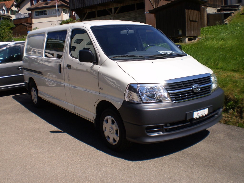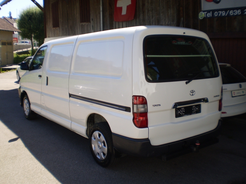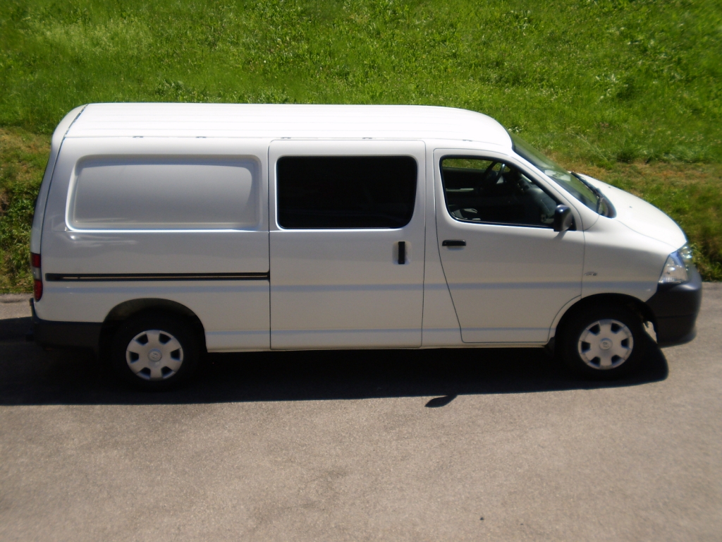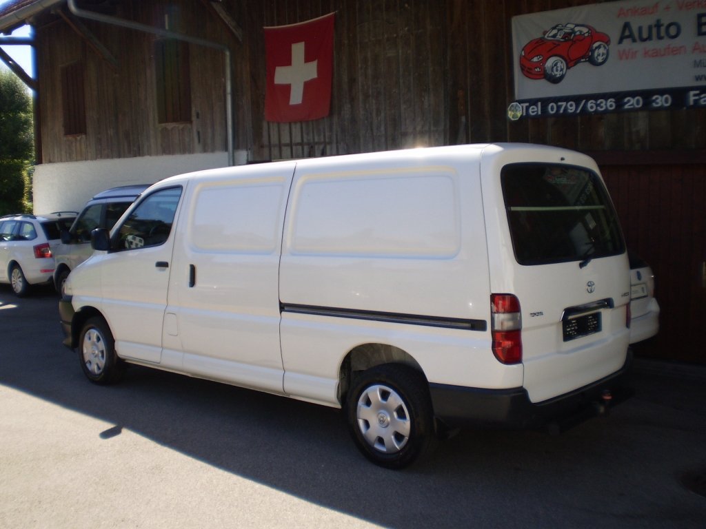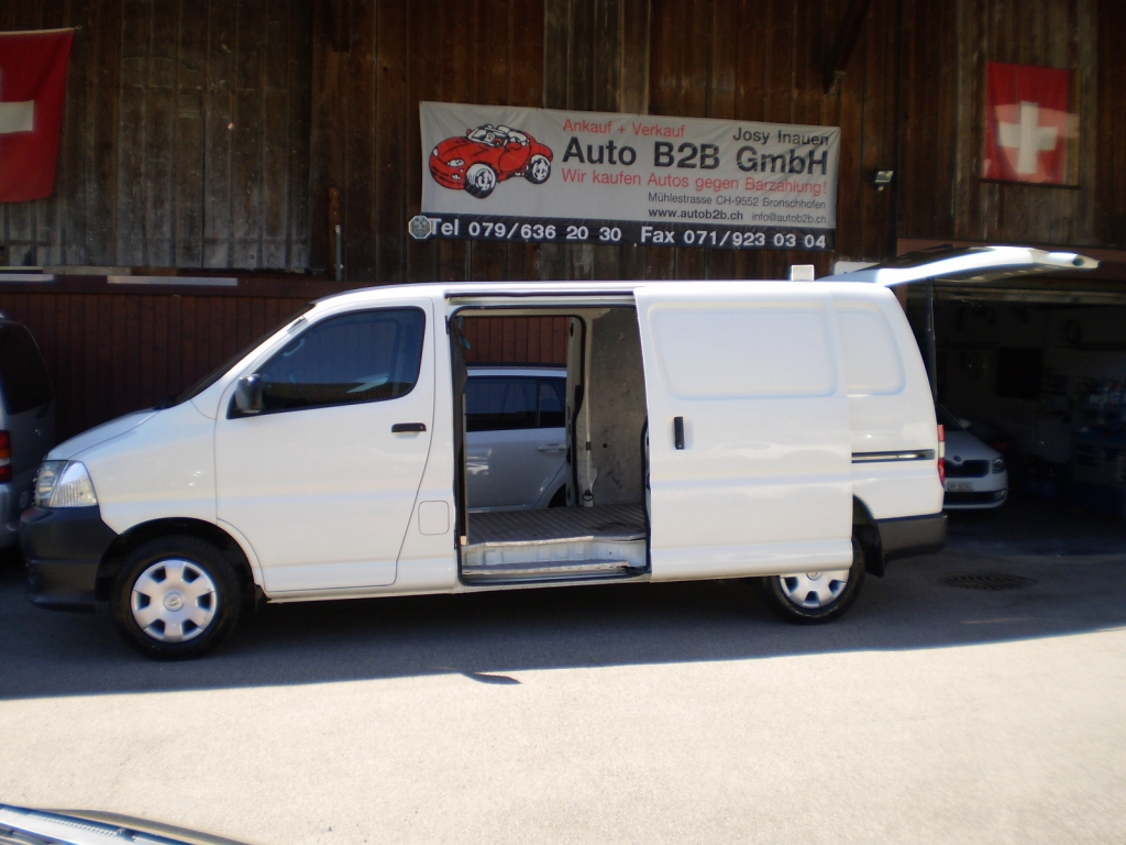 2x Schiebetüren !!mit Sortimo Werkstattausrüstung !Lang Version !! AHK 2000kg!! Service gepflegt !!noch weitere Hiace am L... Fahrzeugdaten. Inverkehrsetzung 25.08.2009 . Fahrzeugart Occasion . Aussenfarbe weiss . Kilometer 131'500 km . Getriebeart Schaltgetriebe manuell . Antriebsart Hinterradantrieb . Treibstoff Diesel . Türen 5 . Sitze 3 . Innenfarbe anthrazit . Hubraum 2'494 cm3 . Zylinder 4 . PS 117 . Leergewicht 2'005 kg . Verbrauch in l/100 km 10.8/7.1/8.5 (St/Land/Tot) . CO2-Emission 224 g/km . Euro Norm Euro 4 . Breite 1'800 mm . Länge 5'240 mm . Höhe 1'995 mm . Nutzlast 1'065 kg . Anhängelast geb. 2'000 kg . Typenschein 3TA390 . Letzte Prüfung 11.09.2017 . Ab MFK Ja . Preis CHF verkauft ! Notizen***möchten Sie ein gepflegtes Auto ??*** CH-Auto !! !! !! Gepflegter Lieferwagen mit 2x Schiebetüren !! -Nutzlast 900kg !! -Anhängerkupplung 2000kg AHL !! (abnehmbar !) -div.Zurschienen !! -Aluminium-Riffelblech Boden !! -Seitenwäde verkleidet !! -rechte Schiebetür mit Fenster !! -2x spez.Neonleuchten im Laderaum !! **Sortimoausbau plus sfr.1000.-(kann auch ohne gekauft werden) !! -ABS !! -Zentralverriegelung !! -5 Gang !! -Elektrische Fensterheber vorne !! -CH-Auto !! -ab Service !! -Kupplung komplet ersetzt !! -alle Service bei Toyota !! !!